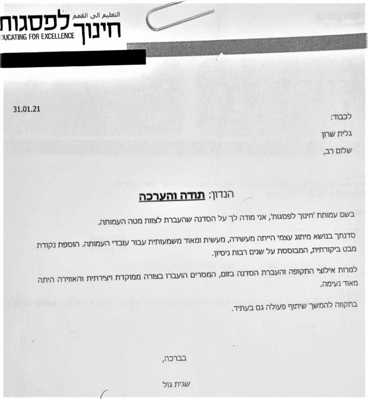 ב-2 העשורים האחרונים תרמתי הרבה סדנאות לעמותות וארגונים שלא יכולים לממן אותן (כולל בשנת הקורונה, שבה כל הסדנאות וההרצאות הושבתו לכמה חודשים, עד שעברנו לזום).